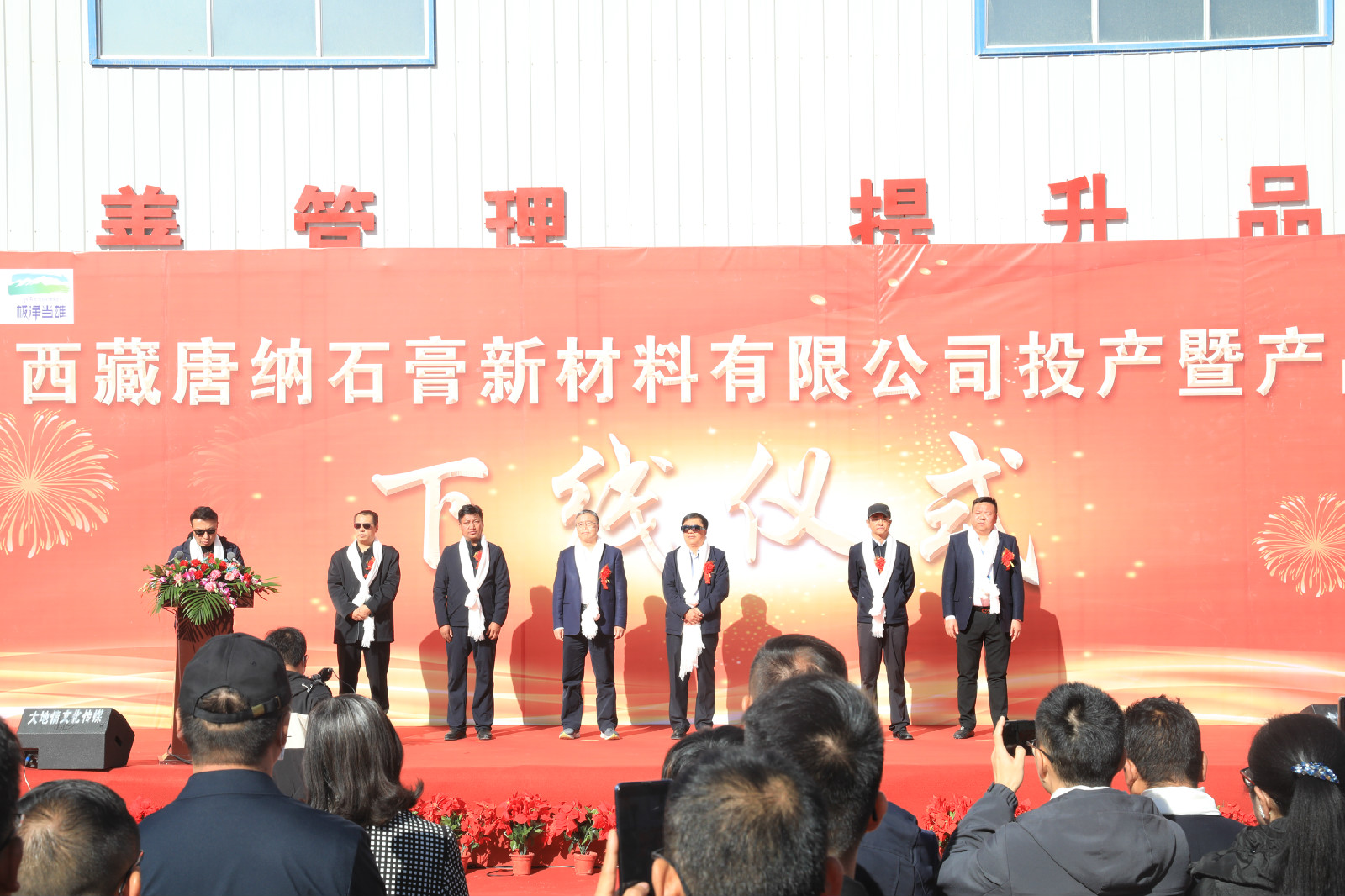 格办(管委会)党组副书记、副主任(主持行政工作)张国宏、中建材联合会石膏分会会长徐洛屹、拉萨市当雄县县委副书记、政府县长其美次仁出席活动并致辞,仪式由格办(管委会)党组成员、副主任楼志刚主持。格办(管委会)相关部门同志、拉萨市当雄县有关部门负责同志、藏青工业园投资股份有限公司负责人、西藏唐纳石膏新材料有限公司 全体员工和社会各界朋友参加了仪式,共同见证和庆祝藏青工业园区重点入园企业——西藏唐纳石膏新材料有限公司投产暨产品下线。