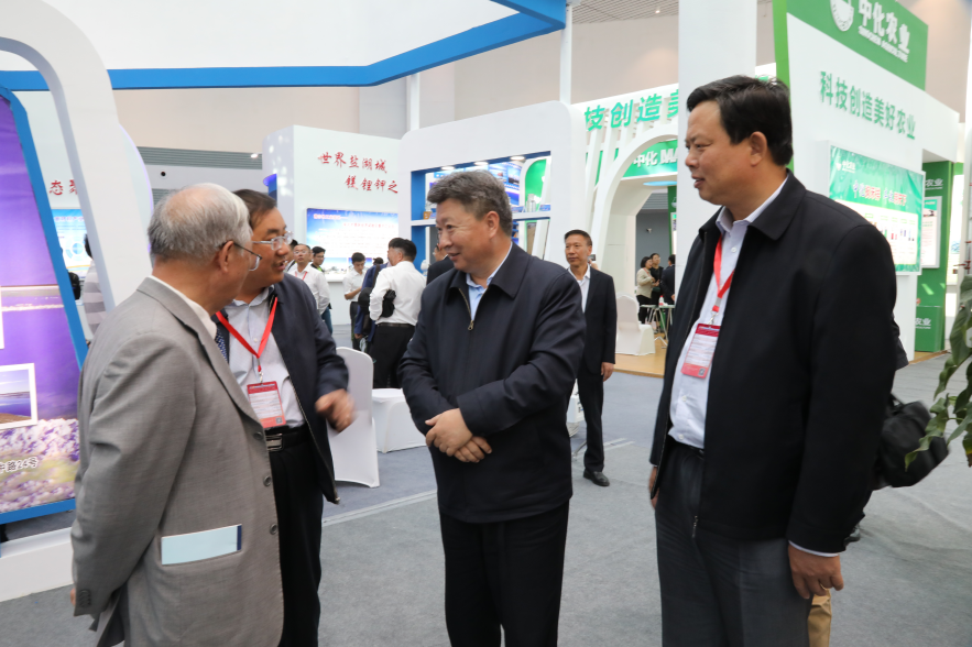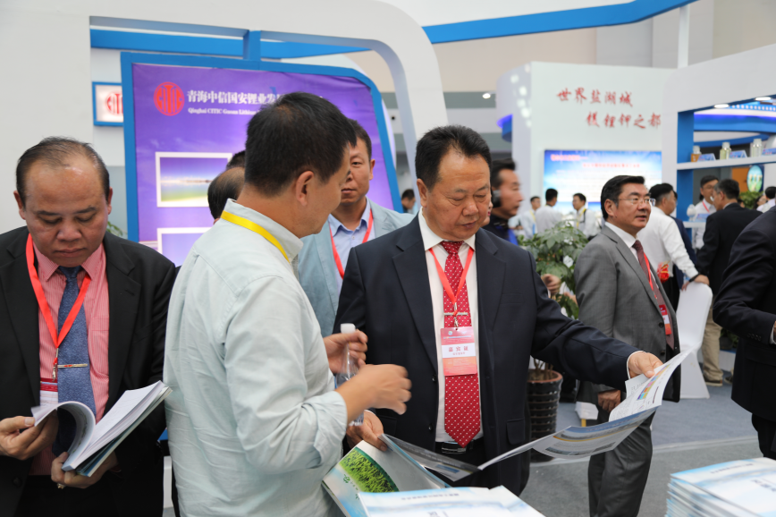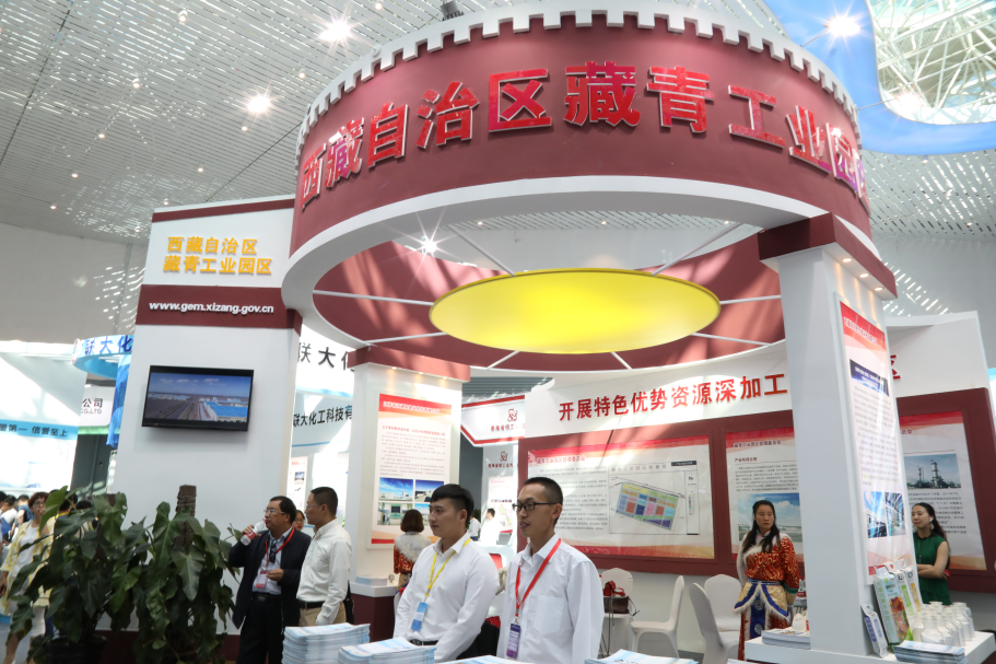 青海省委常委宫保扎西、中国工程院院士郑绵平参观园区展台